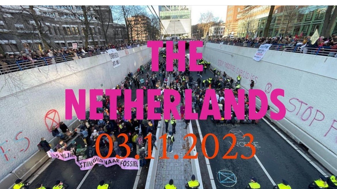 3,000 Extinction Rebellion activists turned out to the A12 highway in The Hague, March 2023